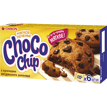 Классическое ароматное мягкое печенье с кусочками натурального шоколада. Тает во рту так быстро, что не замечаешь, как заканчивается упаковка.